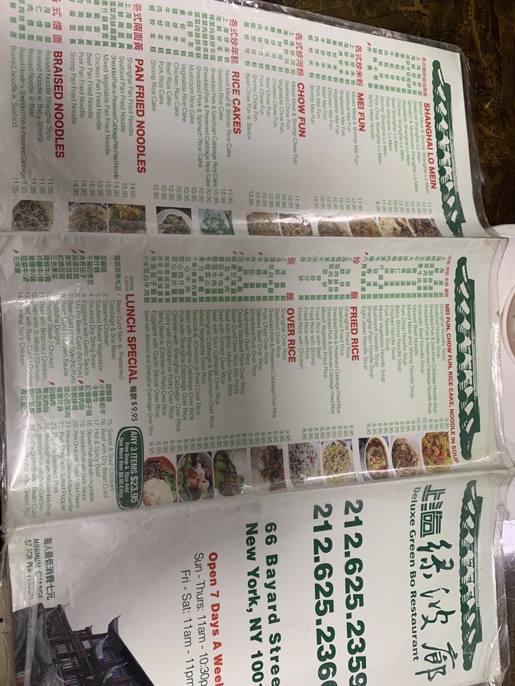 Deluxe Green Bo in New York's Chinatown offers delicious and affordable Chinese cuisine. Known for their superb crab and pork soup dumplings, the menu also includes fried tiny buns, steamed pork buns, hot and spicy wontons, Shanghai style noodles, and more. The soup dumplings are a standout, filled with savory broth and packed with flavor. The restaurant has a casual vibe with quick service, making it a great spot for a meal with friends or family. The portions are generous, perfect for sharing. While the restaurant only accepts cash and Venmo, the value for the quality of the food is exceptional. Deluxe Green Bo is a must-visit for anyone craving authentic Chinese dishes in a cozy setting.